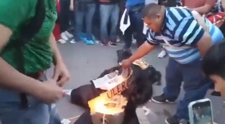 Reportan que fueron simpatizantes de Morena originarios del estado de Veracruz quienes trajeron el muñeco hecho de papel, al que usaron como piñata, sin recompensa alguna.