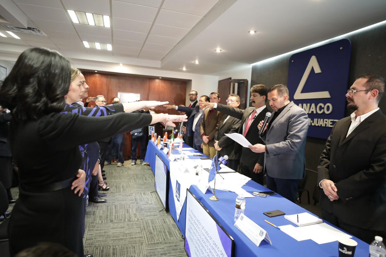 A la toma de protesta acudieron agremiados de la cámara, Óscar Ibáñez, representante de la Gobernadora en Juárez; Ivan Pérez Ruiz, director de Desarrollo Económico del Municipio y miembros de la iniciativa privada.