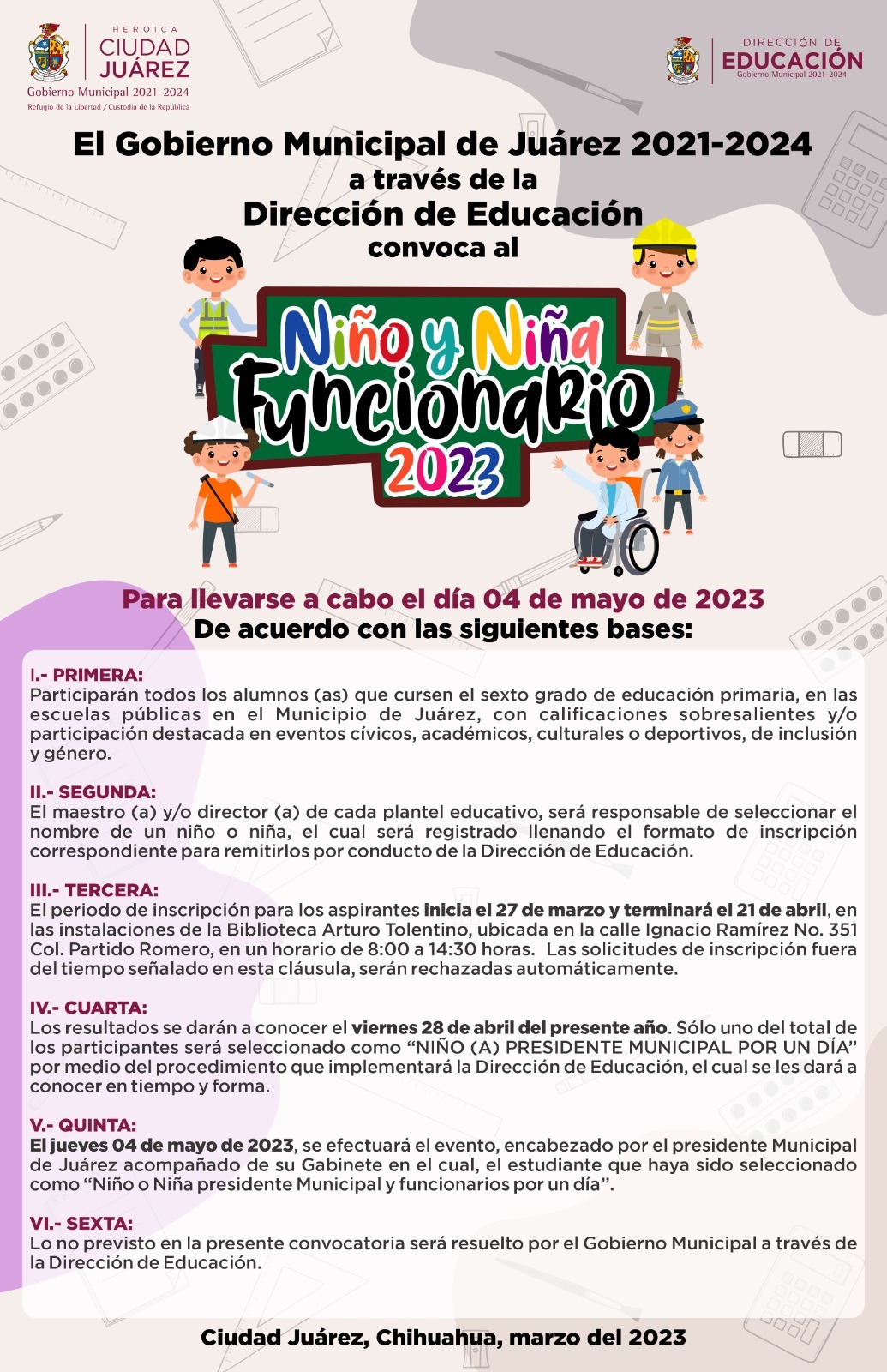 La Dirección de Educación Municipal, convoca a los infantes a participar como niño y niña funcionario 2023, en un evento que se llevará a cabo el 4 de mayo.