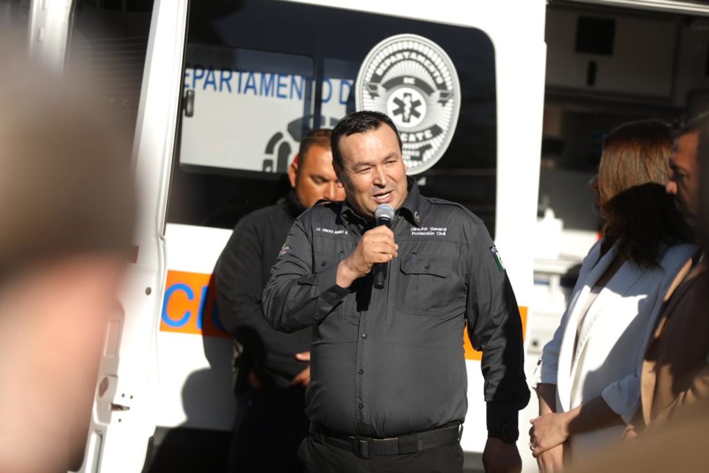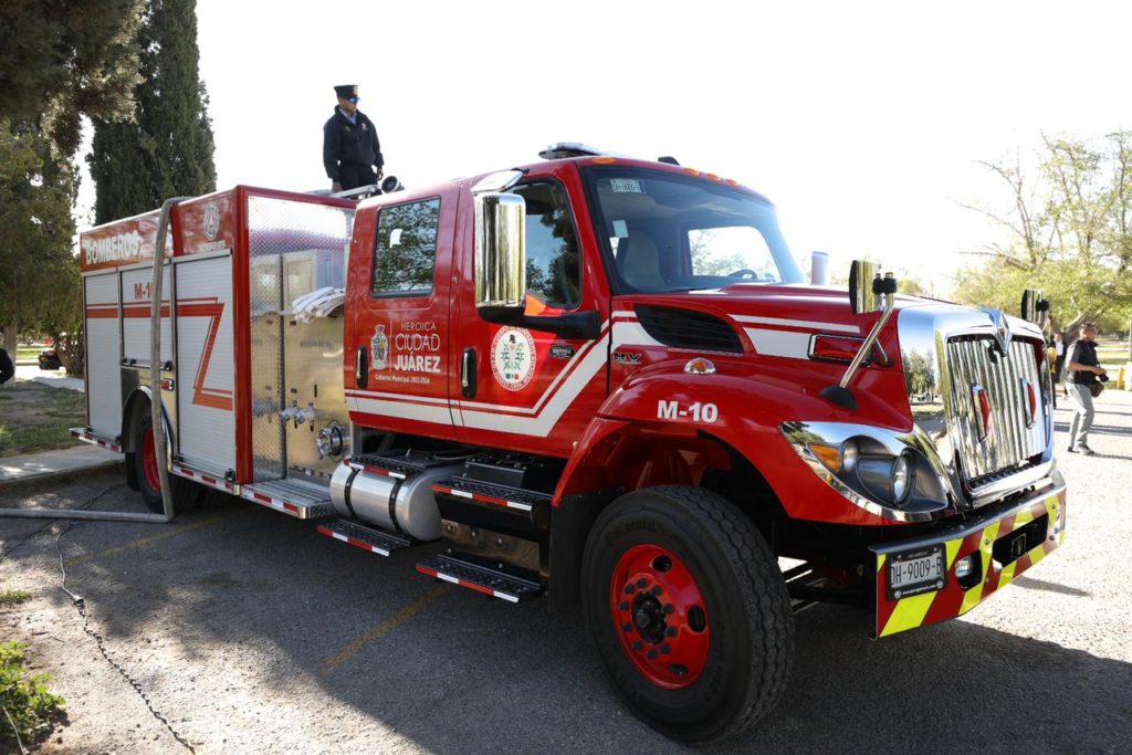 En la entrega de este equipamiento, el alcalde Cruz Pérez Cuéllar fue acompañado por Rubí Enríquez, presidenta del Sistema para el Desarrollo Integral de la Familia del municipio de Juárez (DIF); Roberto Briones Mota, director de Protección Civil; Sergio Rodríguez, comandante de Bomberos y Juan González Alfaro, capitán primero del departamento de Bomberos.
