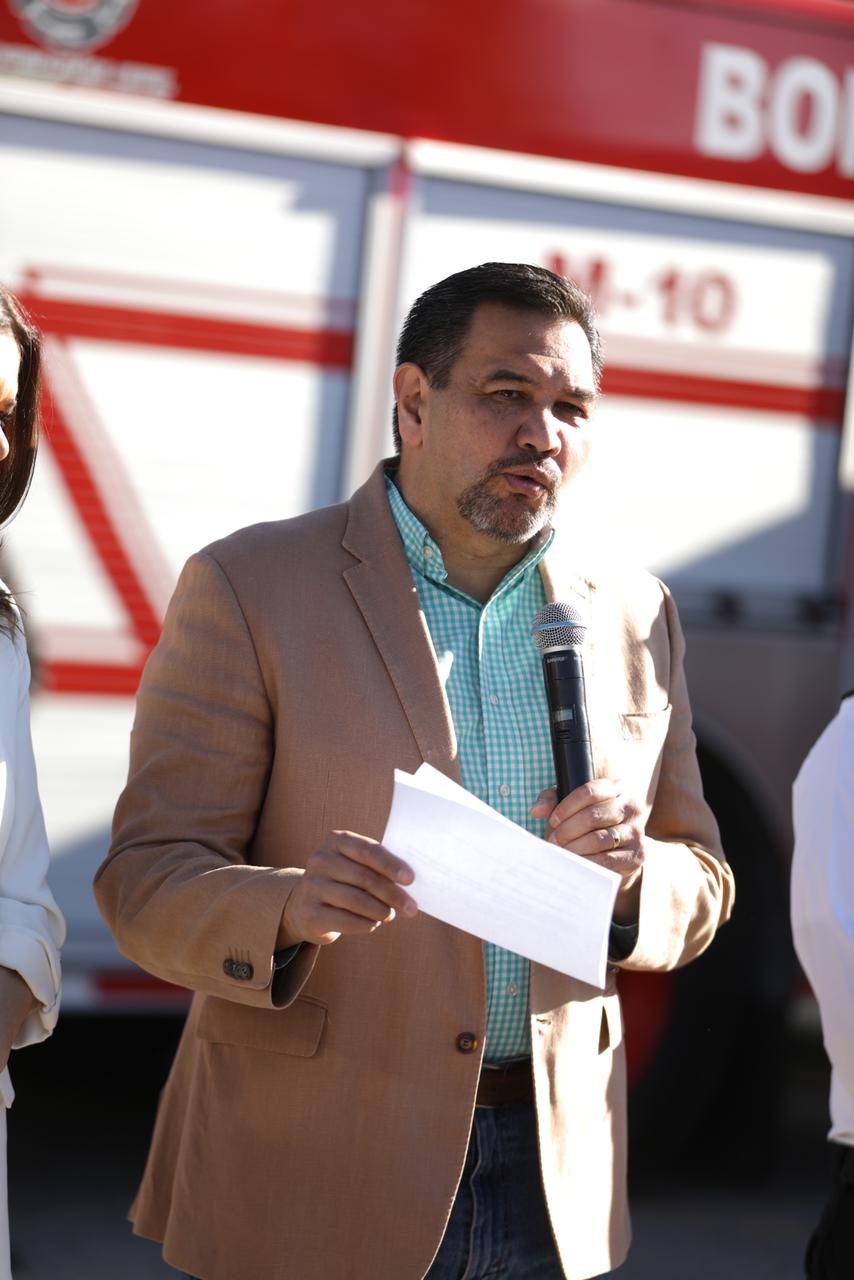 En la entrega de este equipamiento, el alcalde Cruz Pérez Cuéllar fue acompañado por Rubí Enríquez, presidenta del Sistema para el Desarrollo Integral de la Familia del municipio de Juárez (DIF); Roberto Briones Mota, director de Protección Civil; Sergio Rodríguez, comandante de Bomberos y Juan González Alfaro, capitán primero del departamento de Bomberos.