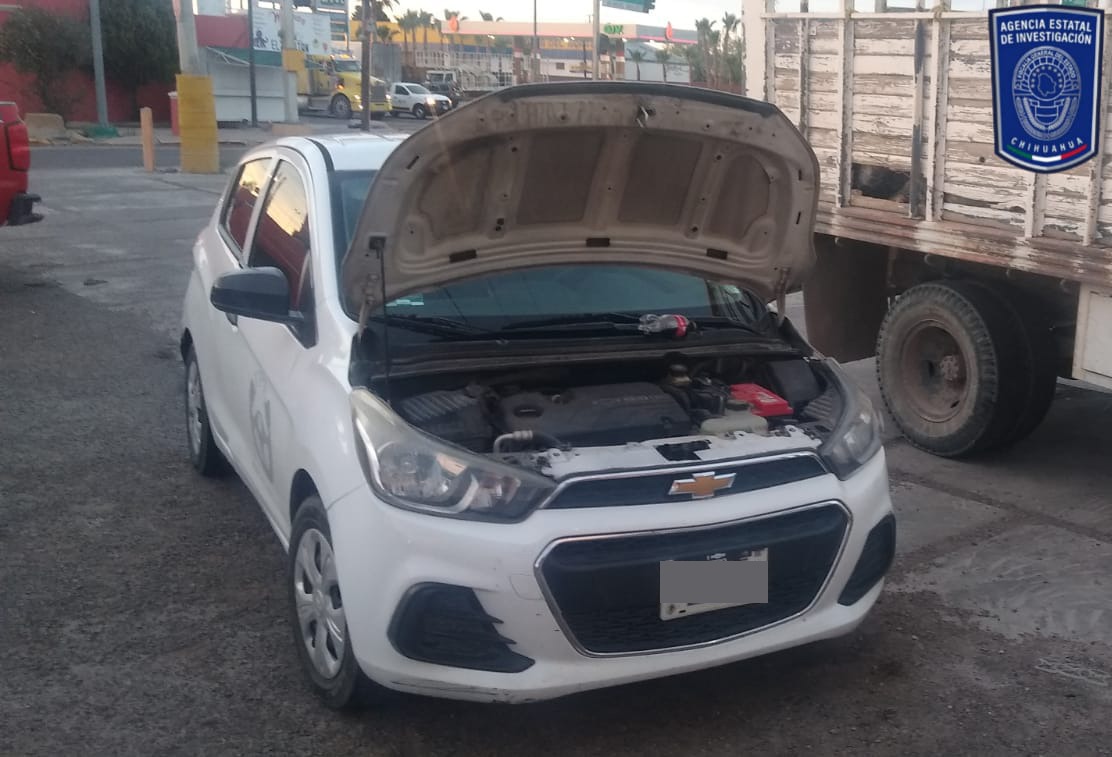 El domingo por la tarde, elementos de la Agencia Estatal de Investigación (AEI) localizaron y aseguraron en el municipio de Jiménez, un automóvil marca Chevrolet, línea Spark, modelo 2017, de color blanco, mismo que horas antes había sido reportado como robado en la ciudad de Chihuahua.