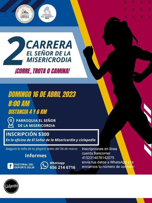 Este día se anunció para el próximo 16 de abril la Segunda Carrera Recreativa El Señor de la Misericordia, de 4 y 6 kilómetros, con la modalidad de correr, trotar o caminar y promover la evangelización a través del deporte.