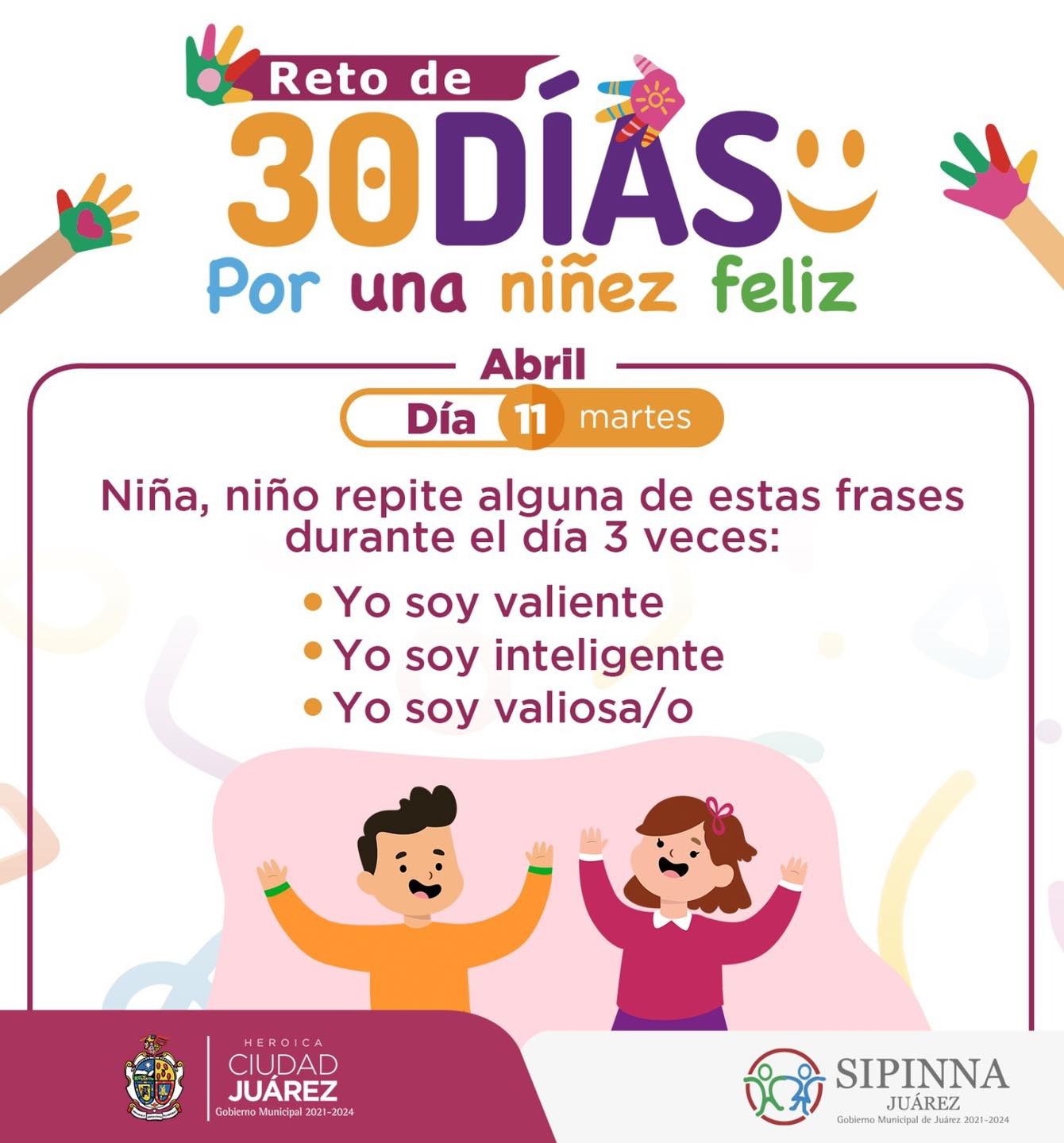 Dentro del marco del Día del Niño y como parte de una dinámica en beneficio de los infantes, el Sistema Municipal de Protección integral de Niñas, Niños y Adolescentes (SIPINNA), invita a los pequeños a realizar el reto del día 11.