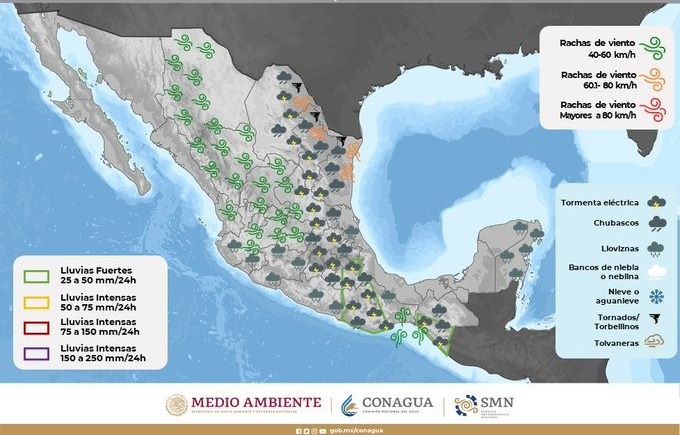 También hay posibilidad de lluvias aisladas en la zona noreste de la entidad, que pueden llegar acompañadas de actividad eléctrica y posible caída de granizo.