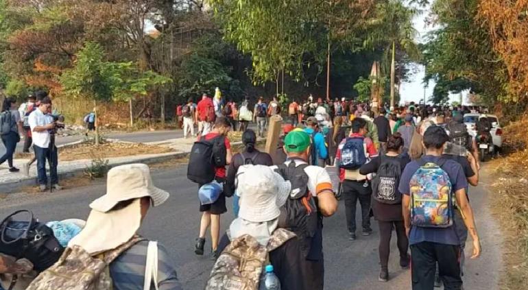 Hace pocos minutos el grupo de más de tres mil migrantes de diferentes nacionalidades que cruzó la frontera por Chiapas, dio inicio al recorrido que realizarán con el fin de llegar a Estados Unidos a través de la frontera de Ciudad Juárez desde el Parque Bicentenario de Tapachula.
