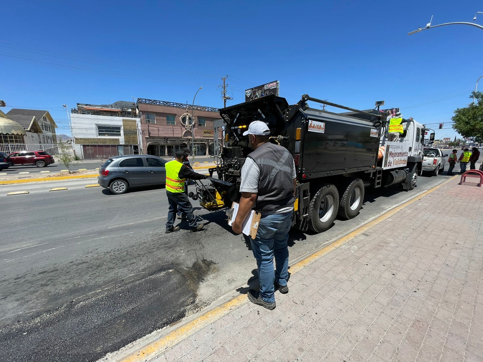 Luego de que el Presidente Municipal, Cruz Pérez Cuéllar, entregó a la Dirección General de Obras Públicas dos máquinas bacheadoras, personal de la dependencia las está usando en reparar los hoyancos que se encuentran sobre las avenidas 16 de Septiembre y la Manuel Gómez Morín.