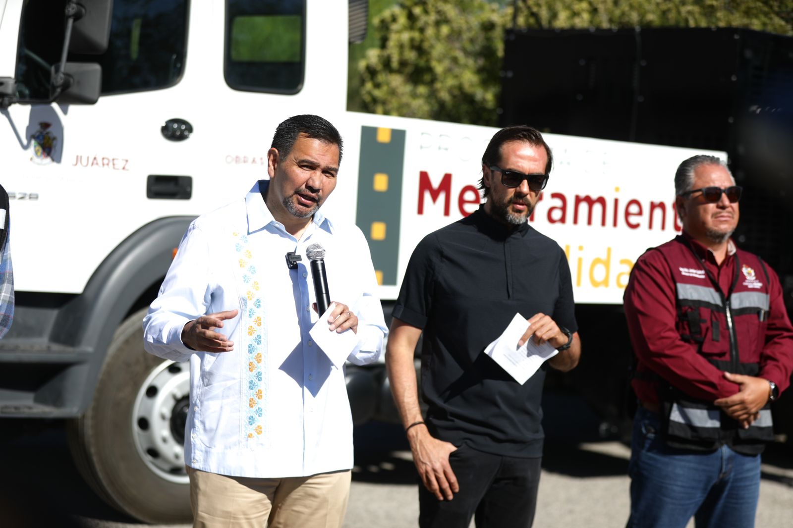 Este día el Presidente Municipal, Cruz Pérez Cuéllar, entregó dos camiones de bacheo a la Dirección General de Obras Públicas, lo que permitirá a la dependencia brindar un servicio permanente de bacheo en las principales avenidas de Ciudad Juárez.