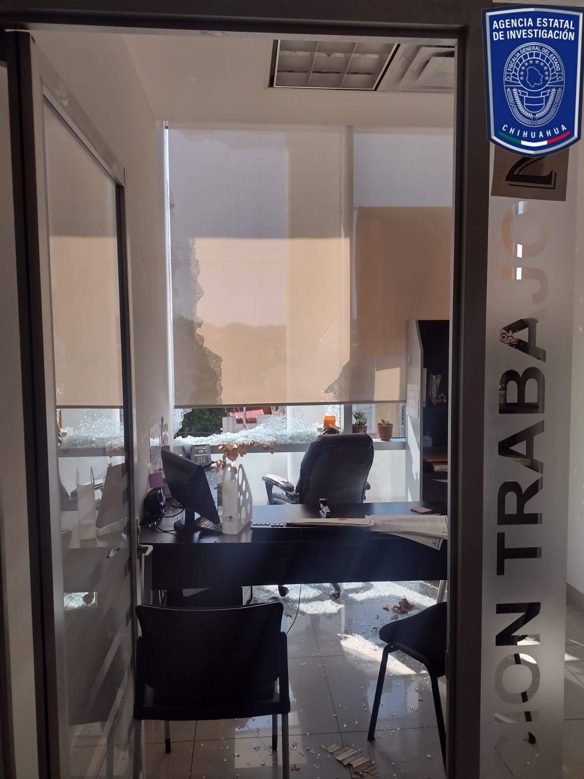 La Fiscalía de Distrito Zona Sur investiga los daños ocasionados al edificio del Gobierno del Estado en la ciudad de Parral, producidos al parecer por proyectil de arma de fuego.