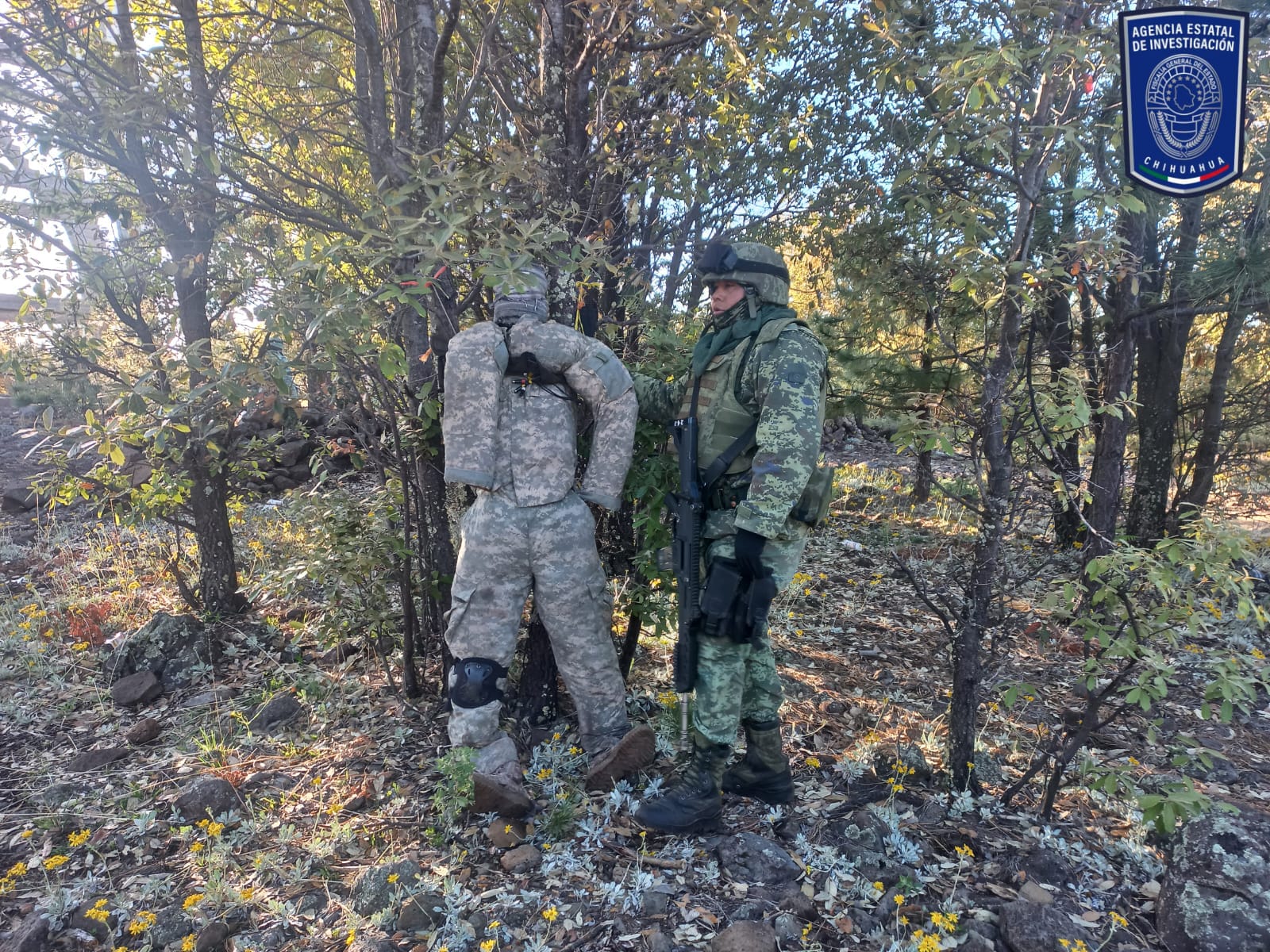 En el lugar conocido como Torre Forestal La Margarita, encontraron vestigios de la presencia reciente de integrantes de un grupo delictivo, ya que encontraron uniformes tipo militar, colchonetas, cobijas y parapetos hechos de piedra, así como alimentos.