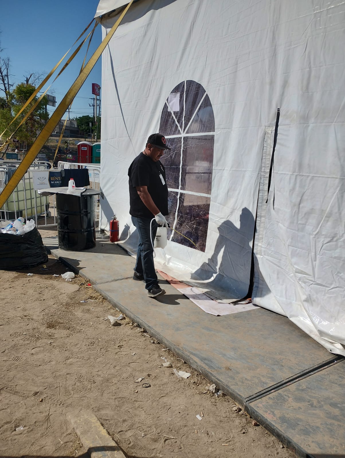 César Díaz Gutiérrez, titular de la dependencia, comento que el campamento está completamente limpio, no se detectó ninguna plaga, pero la instrucción es que se les brinden las mejores condiciones a las personas que lo ocupan y la prevención contra las plagas es también importante, ya que la carpa está en una superficie de terracería.