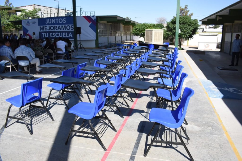 En lo que respecta a Ciudad Juárez fueron beneficiados 23 preescolares, 69 primarias y 16 secundarias; el mobiliario distribuido consiste en 1,091 butacas, 48 pizarrones, 82 mesas, 117 sillas para docentes, 576 mesas binarias y 1,152 sillas para alumnos.