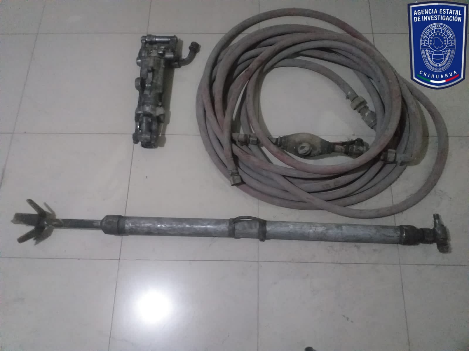 En atención a un reporte de allanamiento en las instalaciones de la empresa minera Grupo México, en el municipio de Santa Bárbara, elementos de la Agencia Estatal de Investigación (AEI), detuvieron en el término legal de la flagrancia a dos masculinos como probables responsables de dicho delito.