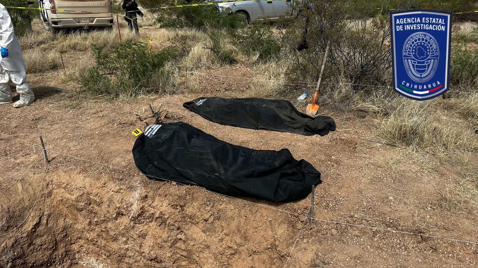 Al continuar con los trabajos de inspección del terreno, se localizan otras dos fosas clandestinas en el mismo sector, cada una con un cuerpo humano y debido al estado de descomposición en que se encontraban los cuerpos, no es posible determinar rasgos físicos ni particulares. Peritos en antropología forense y criminalística procedieron al procesamiento de las osamentas, las cuales fueron trasladadas a las instalaciones del Servicio Médico Forense de la FGE en Ciudad Juárez, para los análisis y estudios que determinen la causa de muerte, tiempo de fallecimiento y proporcionen información a las investigaciones sobre la identidad.