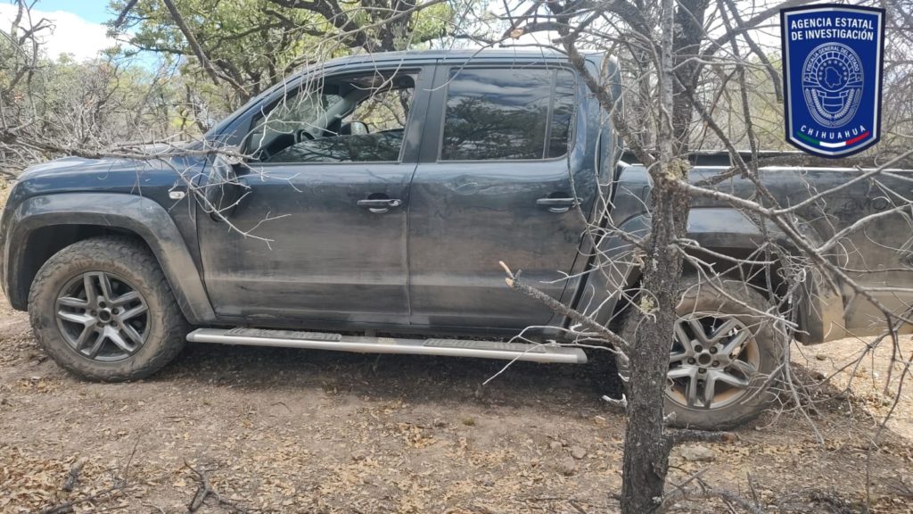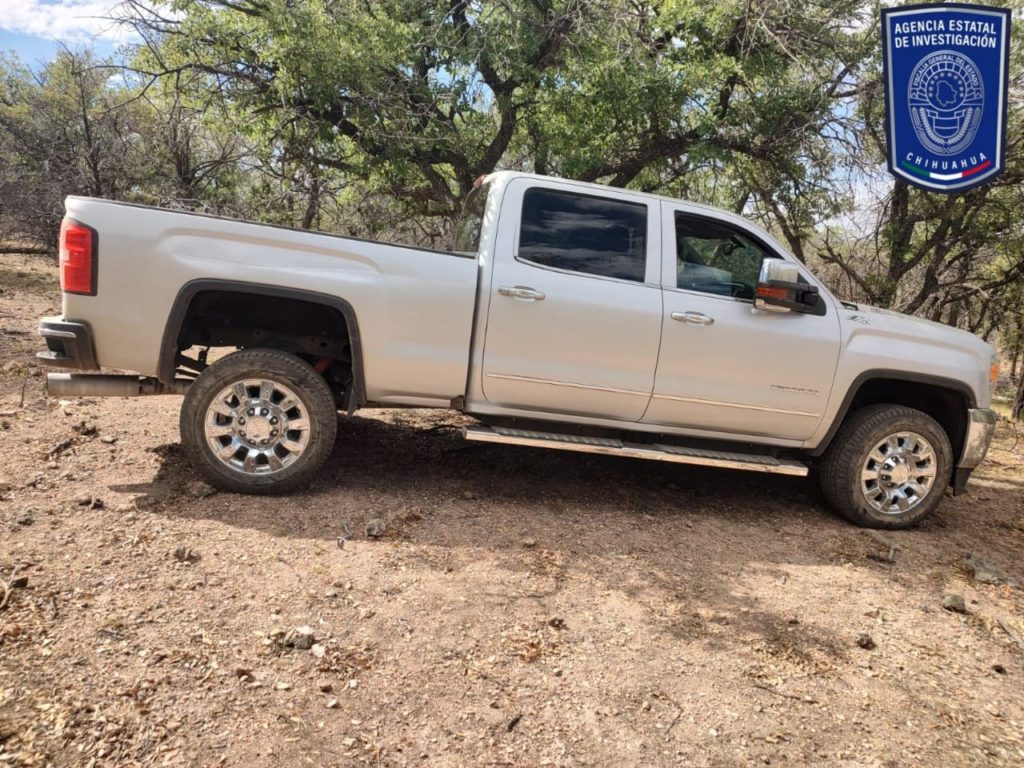 Finalmente, en la brecha que conduce de La Lagunita a Ojo de Agua, municipio de Cusihuiriachi, se ubicó un vehículo de la marca GMC, línea Yukón, color blanco, sin placas, que se encontraba abandonado y que había sido robado en Corredor Comercial.