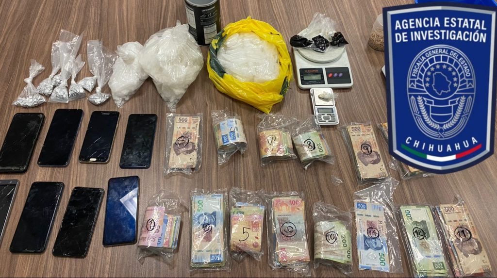 En seguimiento a investigaciones para el combate al narcomenudeo y en coordinación con la Secretaría de la Defensa Nacional, se efectuó un cateo en la colonia Real Carolinas de la ciudad de Chihuahua, en donde elementos de la Fiscalía Especializada en Operaciones Estratégicas, detuvieron a dos hombres y una mujer en posesión de drogas y les aseguraron 86 mil pesos en efectivo.