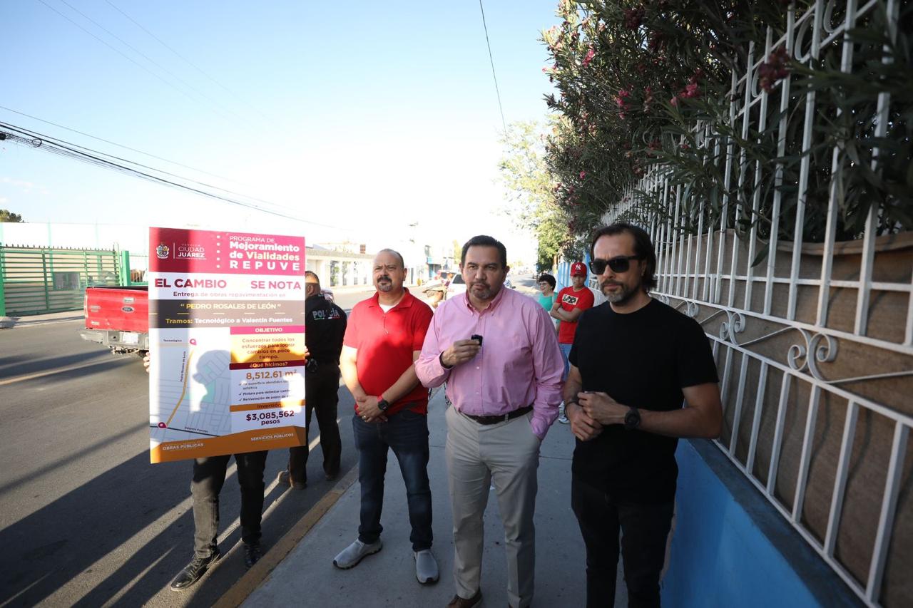 El Presidente Municipal, Cruz Pérez Cuéllar, acudió a la avenida Pedro Rosales de León, para entregar a los vecinos las obras de repavimentación que realizó el Municipio a través el Programa de Mejoramiento de Vialidades con recursos del Registro Público Vehicular.