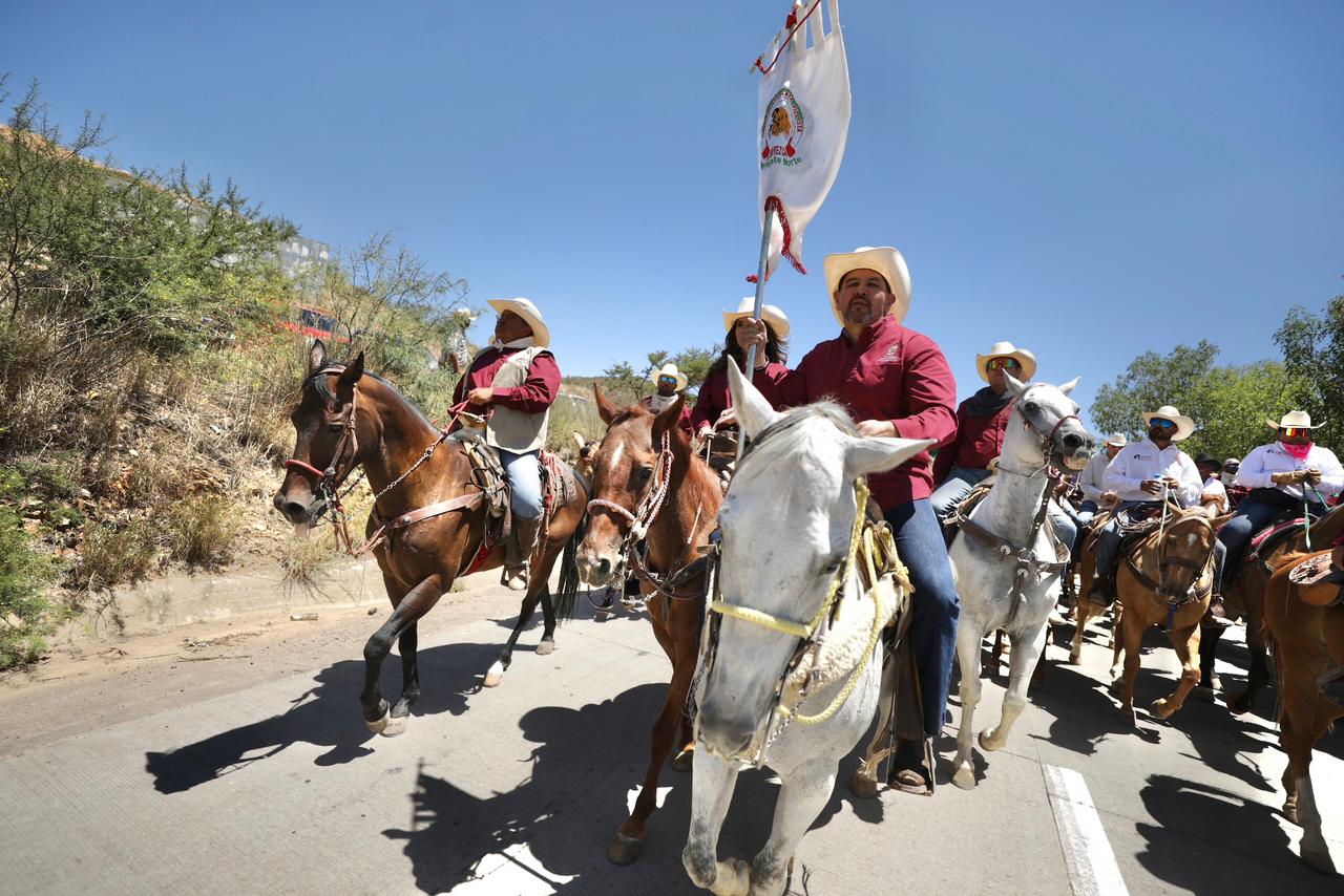 Abanderando al municipio, el alcalde arribó a Parral a caballo, así como los cientos de jinetes de todo el estado que se reunieron en este punto después de más de dos semanas que partieron desde Ciudad Juárez, el pasado 2 de julio.