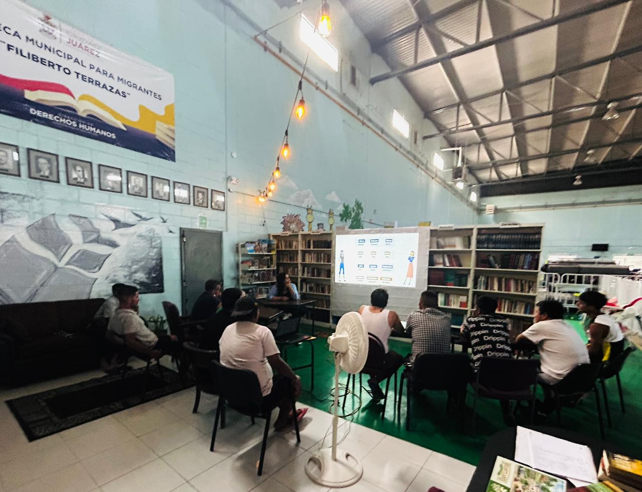 En una segunda sesión de enseñanza, las personas migrantes participantes repasaron las lecciones previas y dieron inicio a la práctica de verbos y enunciados prácticos, lo cual les permitirá desarrollar habilidades comunicativas esenciales en el idioma inglés, mencionó el defensor de derechos humanos.