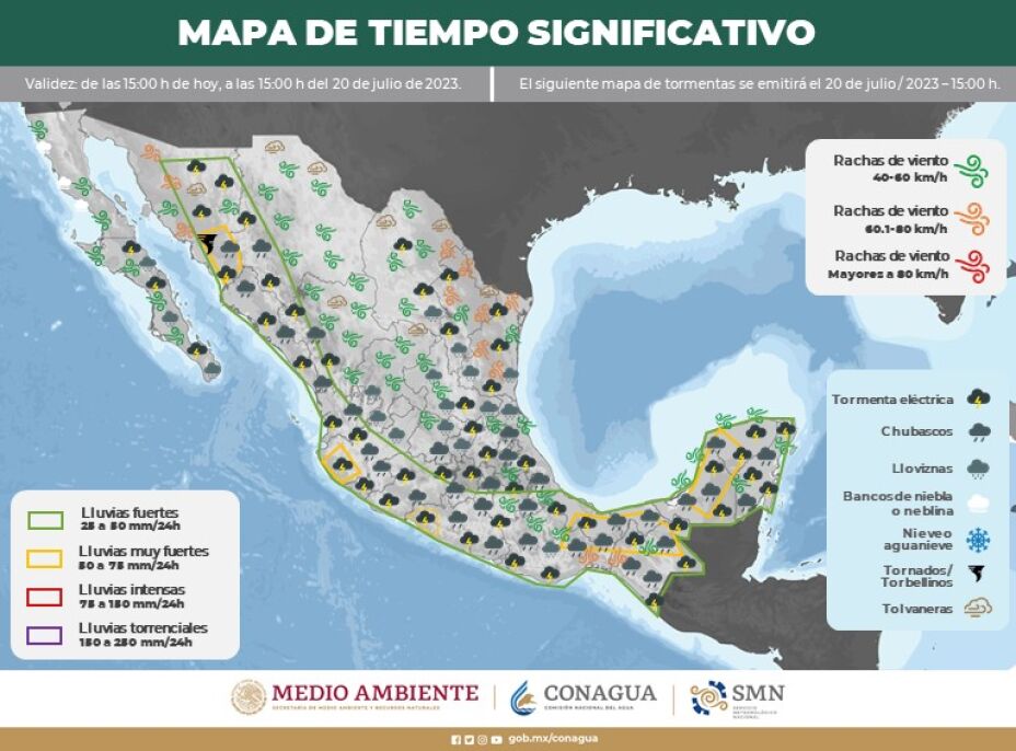 Las lluvias pueden estar acompañadas de actividad eléctrica y posible caída de granizo.
