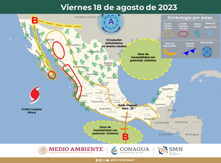 Para este viernes, el monzón mexicano sobre el noroeste de México en interacción con divergencia en altura, circulación anticiclónica en niveles medios de la atmósfera y un canal de baja presión, favorecerán ambiente de templado a cálido por la mañana, de caluroso a muy caluroso por la tarde, temperaturas frescas en la zona serrana, cielo de despejado a parcialmente nublado, vientos de 5 a 20 km/h, con rachas que pueden superar los 55 km/h en partes de las zonas norte, centro y noreste, incluye: Juárez, Ahumada, Julimes, Coyame, Ojinaga y Manuel Benavides.