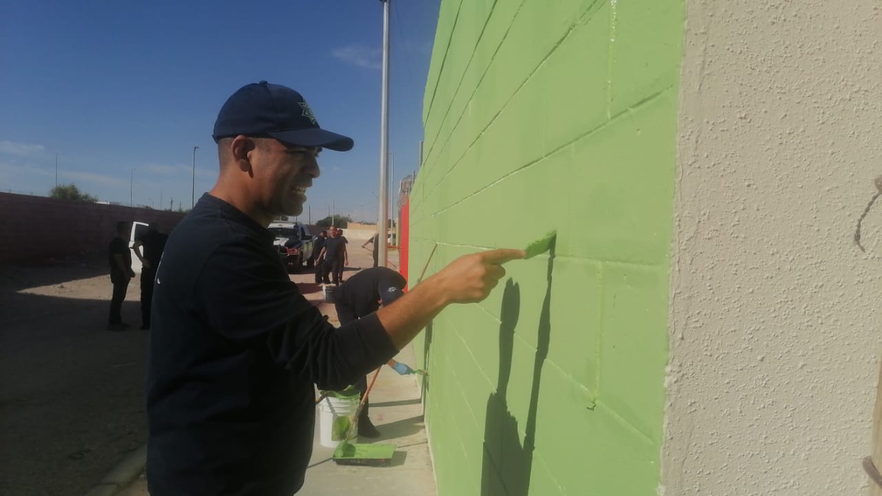 Apoyan cadetes de la Academia Municipal de StaffJóvenes cadetes que se encuentran en el curso de formación policial en la Academia Municipal de Policía, llevaron a cabo actividades de remozamiento en diversos espacios públicos de la localidad.