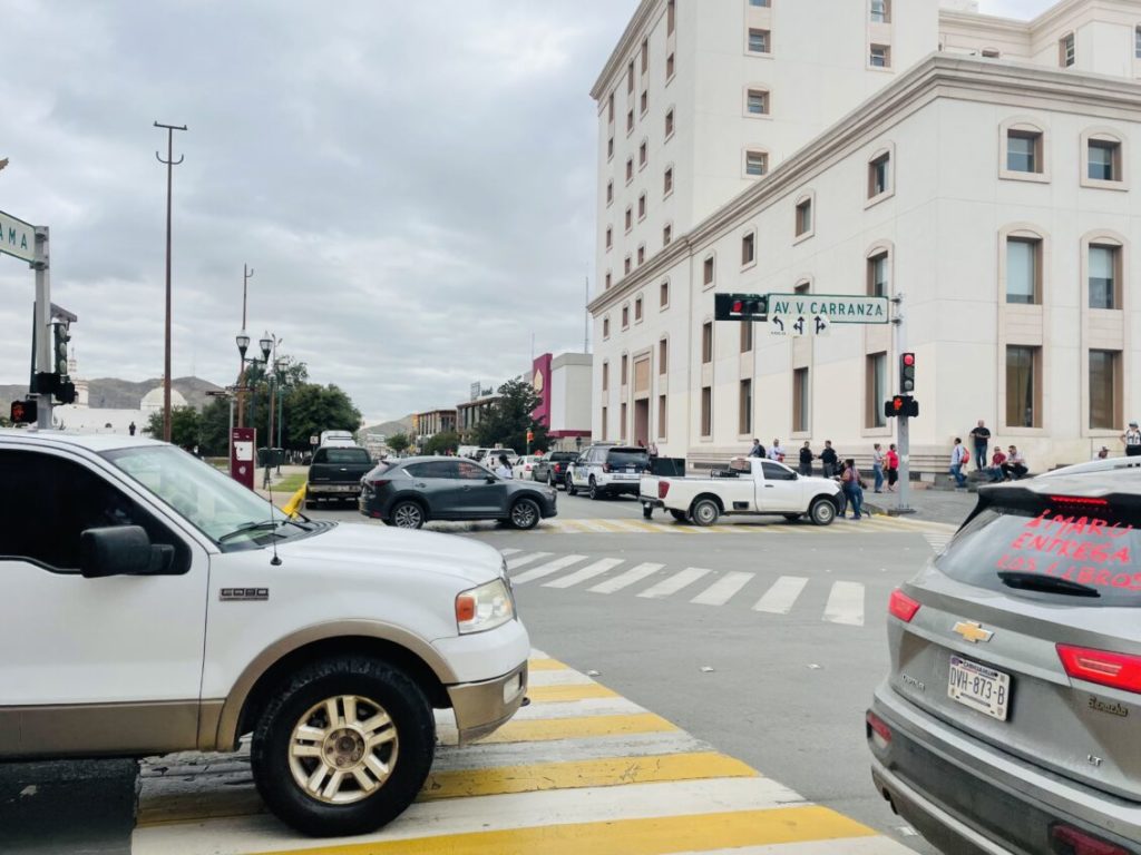 Con pancartas, algunos caminando y otros en vehículos, circularon a través de la avenida Universidad hasta llegar a la sede del Ejecutivo, en donde exigieron que les sean entregados los libros.