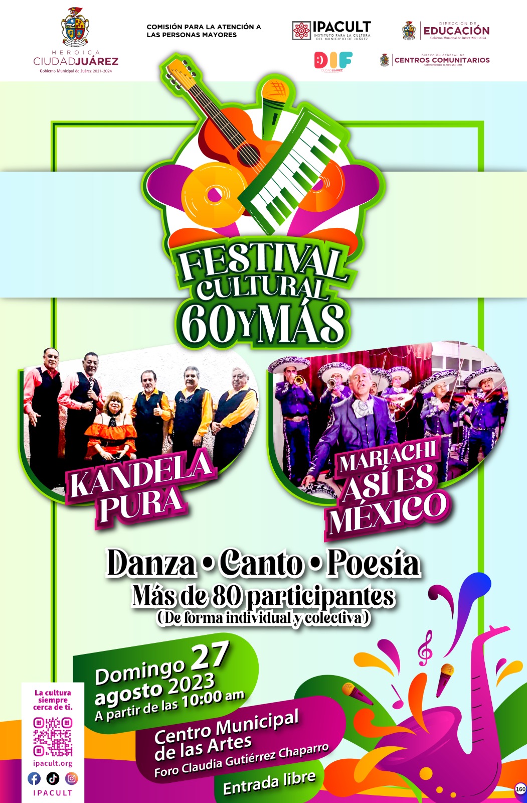 Dicho evento estará amenizado con la música del mariachi Así es México y del repertorio de la sonora Kandela pura, quienes de seguro pondrán a bailar a los asistentes con su estilo único, informó Miguel Ángel Mendoza Rangel, director del Instituto para la Cultura del Municipio de Juárez (IPAULT).