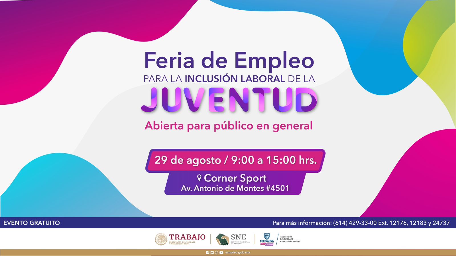 La STPS informó que aun y cuando el evento está enfocado en la juventud chihuahuense, se ofertarán oportunidades laborales para el público en general, así como vacantes incluyentes para personas adultas mayores y/o con alguna discapacidad.