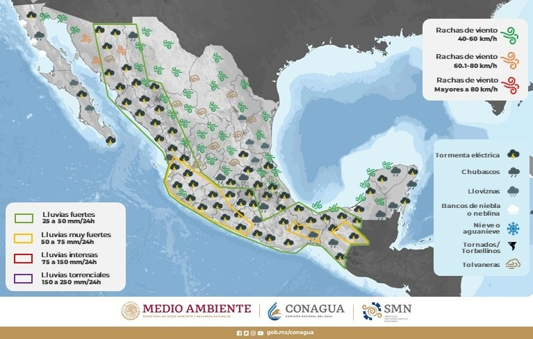 Las lluvias pueden estar acompañadas de actividad eléctrica y posible caída de granizo.