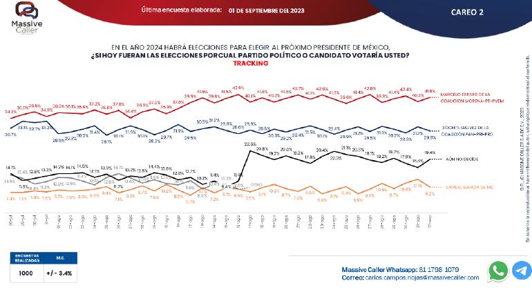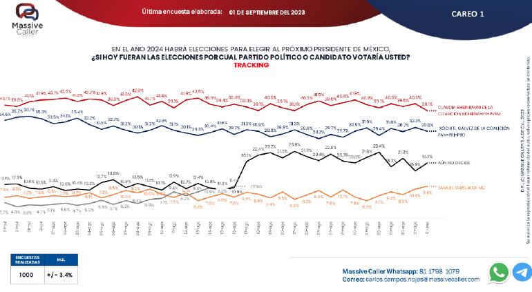 Massive Caller publicó la última encuesta levantada, con mil llamadas a lo largo de México del pasado viernes 1 de septiembre.