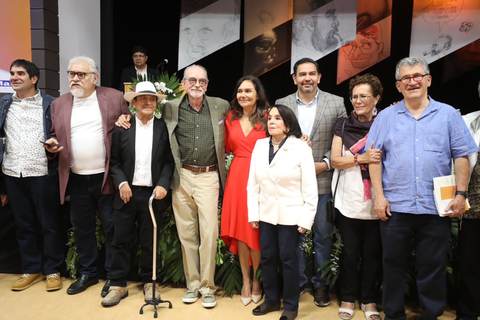 De igual forma el escritor Miguel Ángel Chávez y Laura Muñoz, directora general de Grupo S-Mart, entregaron una placa de reconocimiento al conocido poeta.