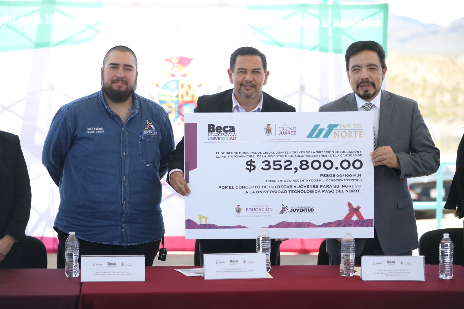 Como parte de las acciones que lleva a cabo el Gobierno Municipal en apoyo a la educación pública, este día el Presidente Cruz Pérez Cuéllar entregó 168 becas de acceso a la Universidad Tecnológica Paso del Norte (UTPN).