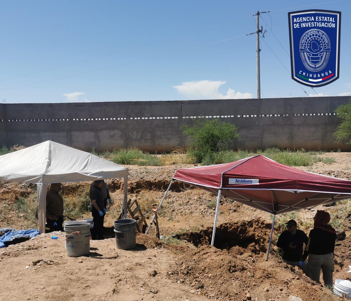 Como parte de las investigaciones efectuadas en torno a los casos vigentes de desaparición de personas, la Fiscalía General del Estado con la participación de un equipo multidisciplinario, cumplimentaron una orden de cateo en una propiedad localizada a la altura del kilómetro 36 de la carretera Chihuahua – Aldama.