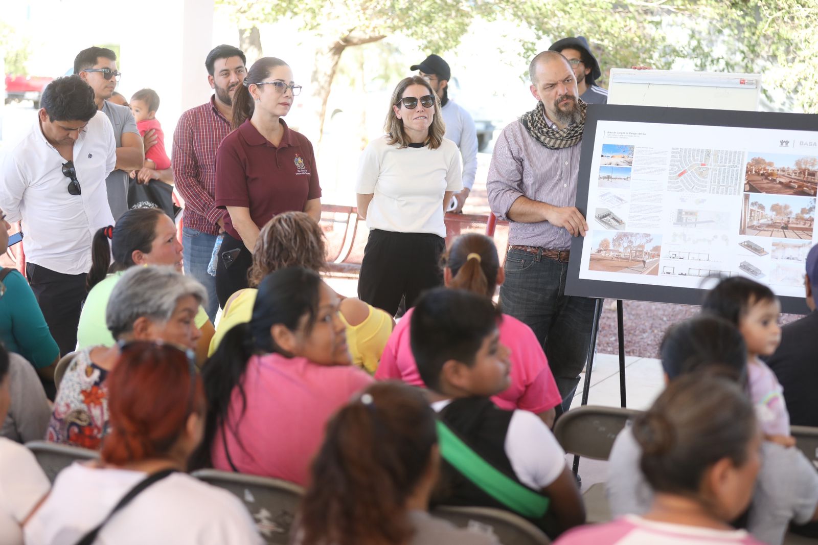 También se llevó a cabo un recorrido por la colonia Parajes de San José, en donde se busca consolidar el desarrollo de las áreas públicas con la instalación de cubiertas y gradas, entre otros trabajos, dijo la funcionaria.