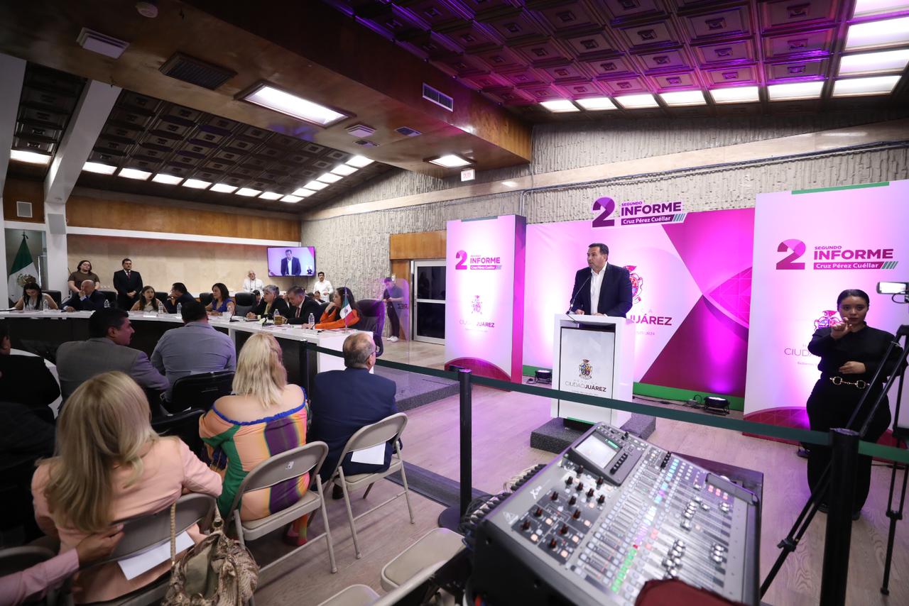 Durante la entrega del Segundo Informe de Gobierno al Cabildo, el Presidente Municipal, Cruz Pérez Cuéllar, expuso la inequidad fiscal de la fracción parlamentaria panista en el Congreso del Estado hacia la comunidad juarense.