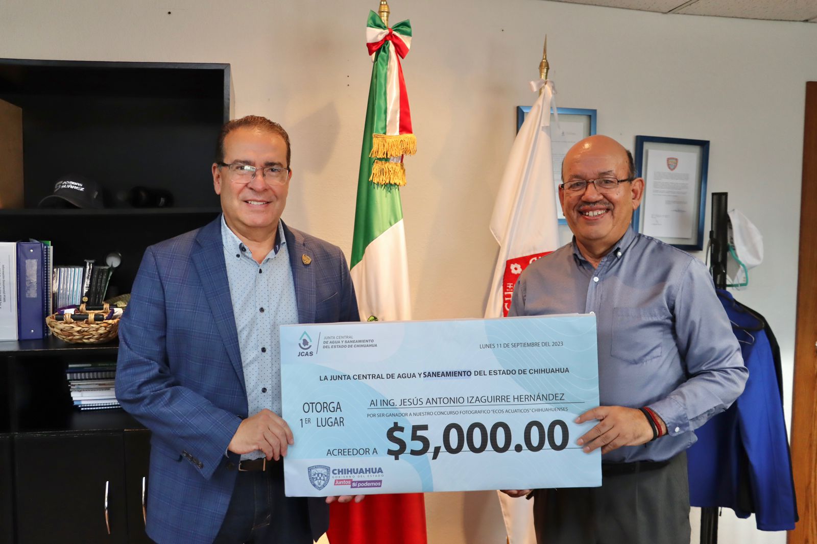 La Junta Central de Agua y Saneamiento premió a Jesús Antonio Izaguirre Hernández, ganador del concurso fotográfico “Ecos Acuáticos Chihuahuenses”, cuyo objetivo era destacar la importancia del recurso hídrico en Chihuahua y su entorno, desde una perspectiva artística.