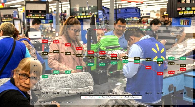 En México, el banco central Banxico es sensible a los datos estadounidenses y podría venir un nuevo aumento a la tasa de interés base situada en 11.25%, en perjuicio de créditos, del consumo y del crecimiento económico a fin de estabilizar los precios.