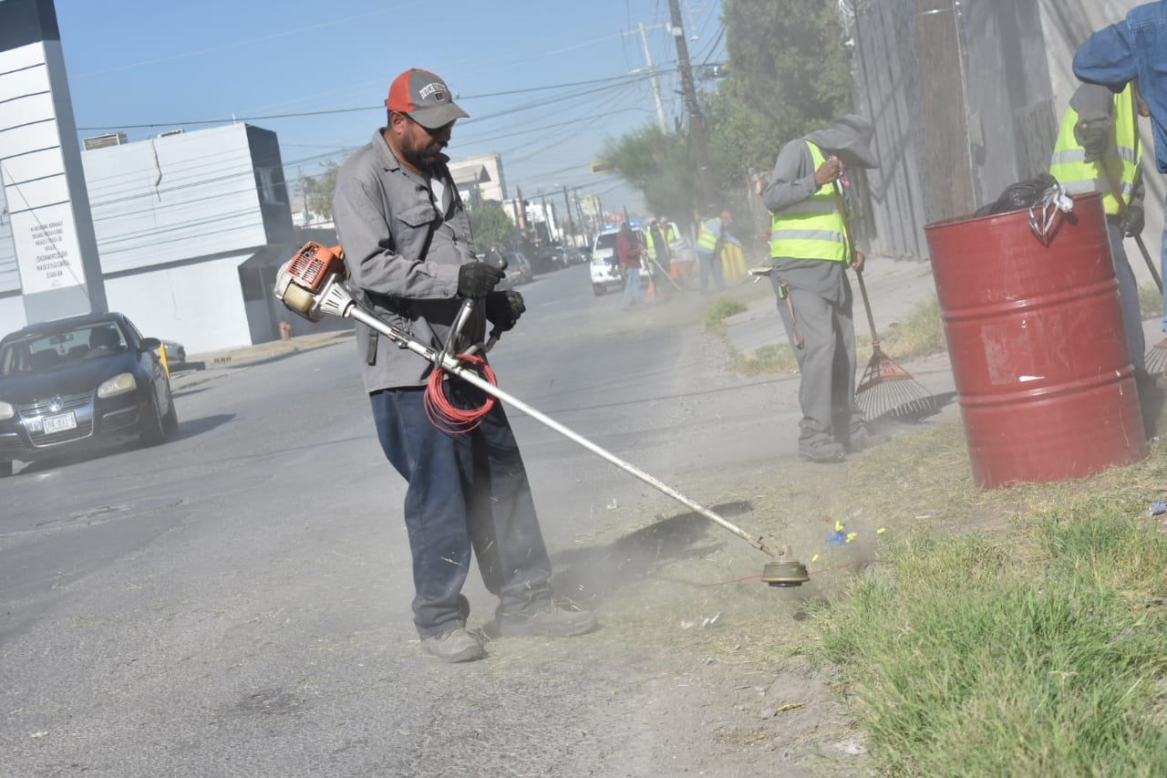 Personal de la Dirección de Limpia trabaja en la limpieza y mantenimiento de la avenida Vicente Guerrero, en el tramo de la calle Gregorio M. Solís hasta la avenida Adolfo López Mateos.Gibran Solís Kanahan, titular de la dependencia, dijo que se desplegó una cuadrilla conformada por 15 personas para atender la vialidad con actividades como el barrido manual, retiro de tierra de arrastre con el apoyo de sopladoras y corte de hierba o maleza de las guarniciones de las banquetas.
