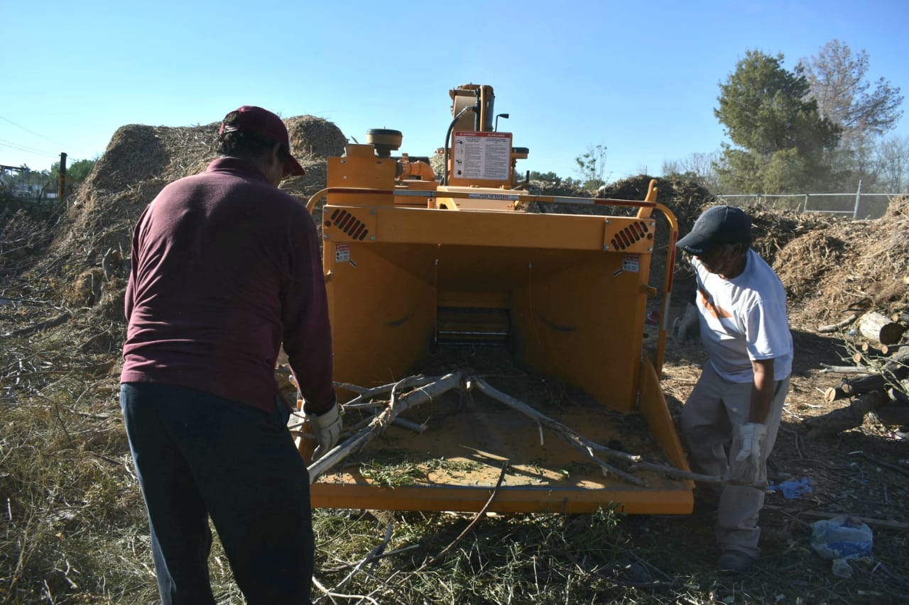 Personal de la Dirección de Parques y Jardines continúa trabajando en el procesamiento de materia orgánica a base de ramas y hojas de árboles, con el fin de convertirla en composta para el mejoramiento de la vegetación que hay en distintos puntos de la ciudad.