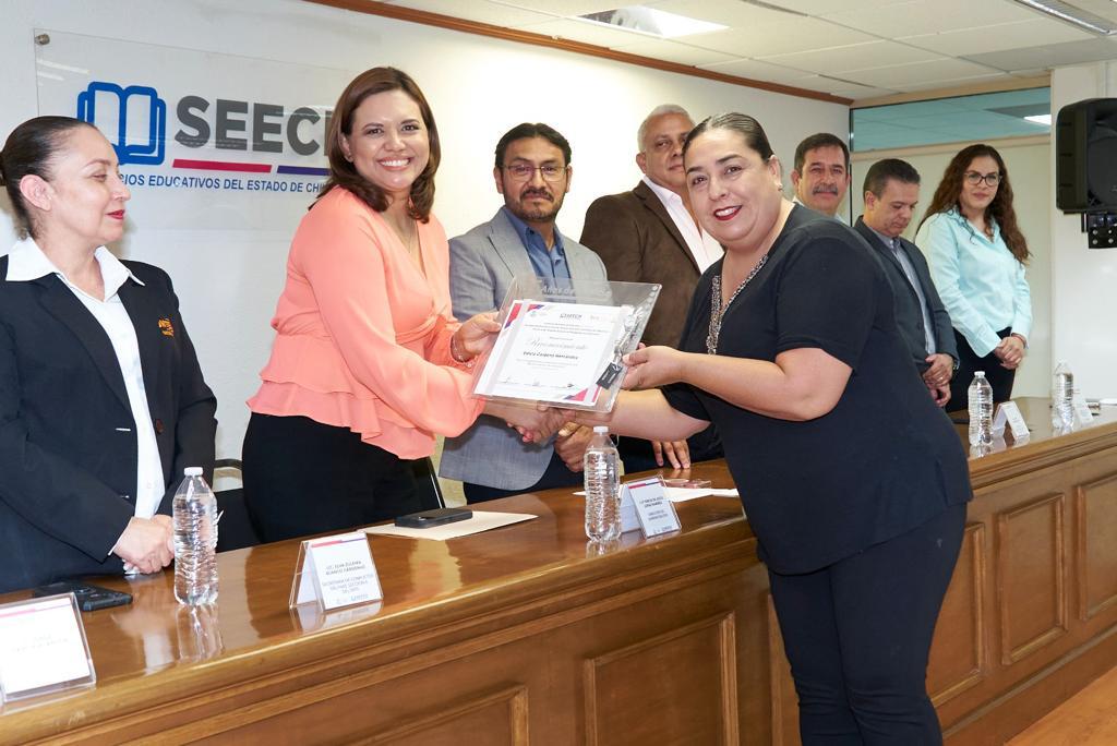 La Secretaría de Educación y Deporte, a través de Servicios Educativos del Estado de Chihuahua, entregó estímulos por antigüedad a personal con 10 y hasta 40 años de servicio.