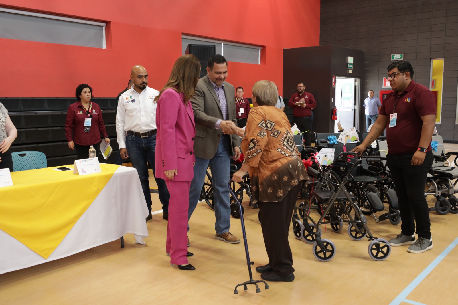Durante el evento se llevó a cabo la entrega simbólica a 10 beneficiarios que recibieron andadores, sillas de ruedas y aparatos auditivos.