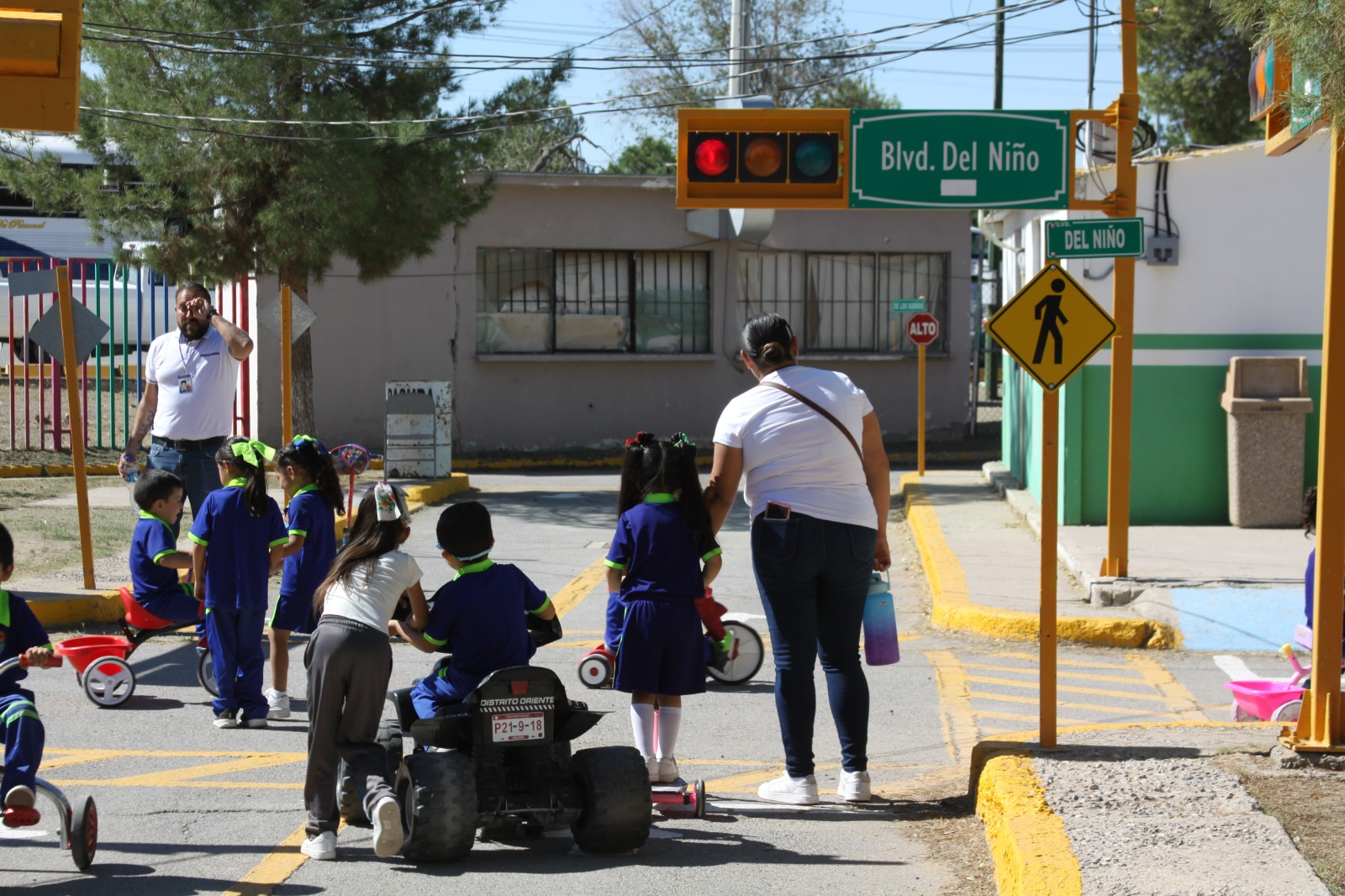 Con la finalidad de aprender sobre temas de seguridad vial de una manera divertida, 129 niños, 31 padres de familia y 9 docentes del Jardín de Niños Enriqueta Jaramillo, que se ubica en las calles Miguel De la Madrid y Alberto Román de la colonia Héroes de la Revolución, visitaron este viernes las instalaciones de la mini ciudad vial.