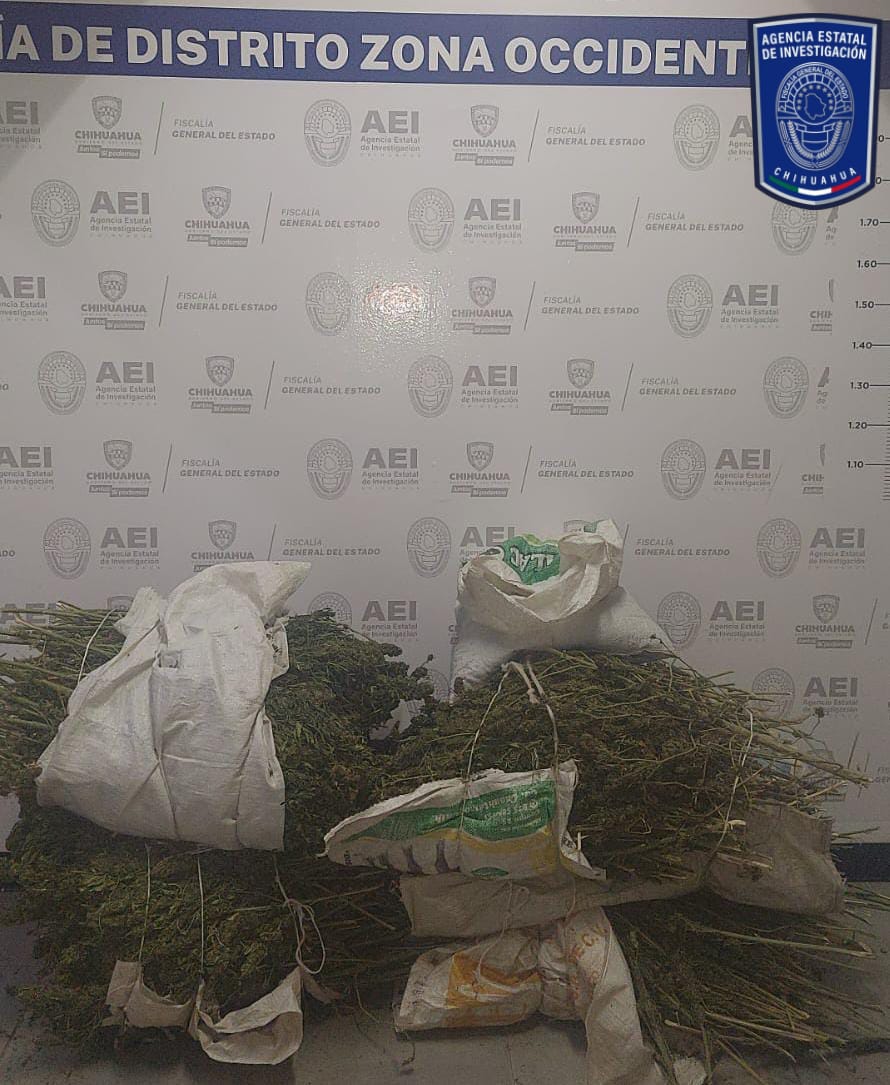 Elementos de la Agencia Estatal de Investigación y del Ejército Mexicano, detuvieron a dos personas identificadas como Leopoldo G. G., y Estreberto C. L., por delitos contra la salud pública, en el municipio de Nonoava.