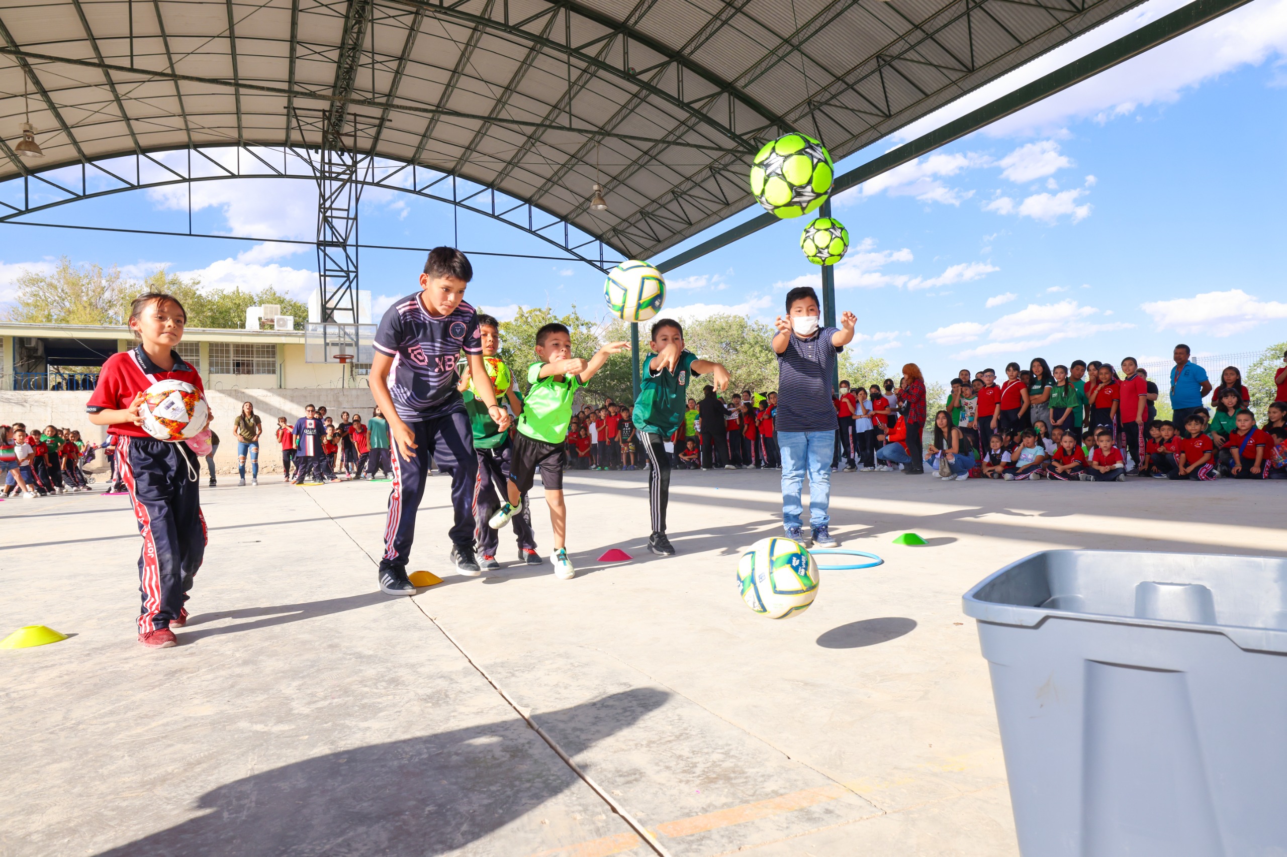 Alumnos del turno vespertino de la Escuela Primaria “José Reyes Estrada” recibieron la visita de jugadores y jugadoras del FC Juárez, con quienes pasaron un momento de convivencia y actividades deportivas.