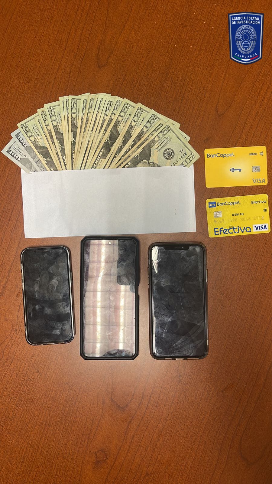 Fue a las 13:30 horas de ayer que finalmente se detuvo a Juan V. G., al momento que realizaba el cobro de la extorsión, asegurándole lo siguiente:- 700 dólares en billetes de distintas denominaciones- 02 teléfonos celulares- 02 tarjetas de una institución bancaria- Vehículo Hyundai Sonata 2016, con placas del estado de ChihuahuaTras continuar con las investigaciones, a las 14:05 horas, se realizó la detención de Cecilia Samantha M. C., a quien se le aseguró un teléfono celular y un vehículo de la marca Chevrolet Malibu 2015 sin matrículas.