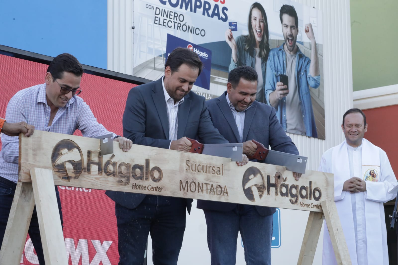 Antes de que los ciudadanos ingresaran a la tienda, el alcalde, así como Pablo Cuarón Fernández, director de Crédito Hágalo y Rodrigo Cuarón Fernández, cortaron una madera como símbolo de la inauguración.