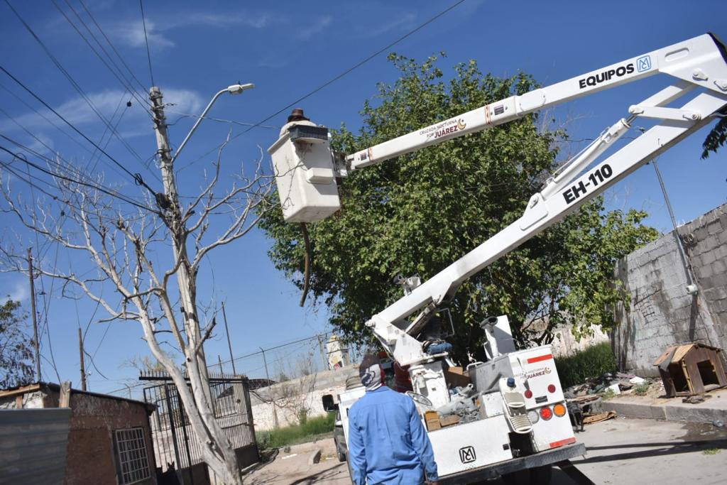 Implementando tecnología led para mayor eficacia lumínica en toda la ciudad, personal de la Dirección de Alumbrado Público continúa instalando lámparas nuevas en las colonias por distintos sectores de Ciudad Juárez, en esta ocasión en la colonia Tierra y Libertad.