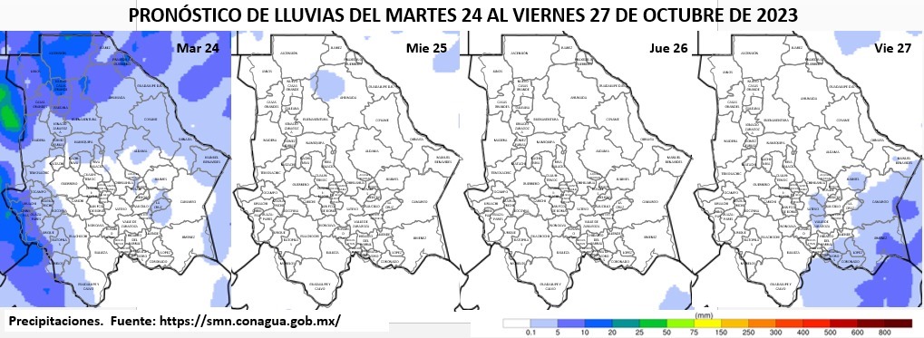 La Coordinación Estatal de Protección Civil (CEPC) dio a conocer que para el día de hoy, se pronostican vientos con rachas que podrían superar los 55 kilómetros por hora (km/h), en partes de las zonas centro y sur de la entidad que incluyen a Riva Palacio, Santa Isabel, Satevó y Valle de Zaragoza.De acuerdo a la información emitida por el Servicio Meteorológico Nacional (SMN), se espera que estas ráfagas alcancen los 45 km/h en Juárez, Namiquipa, Temósachic, Guerrero, Ocampo, Bocoyna, Guachochi, Guadalupe y Calvo, Balleza, Nonoava, San Francisco de Borja, Cuauhtémoc, Chihuahua, San Francisco de Conchos, Saucillo, Huejotitán, Parral, Jiménez y Ojinaga.En lugares como Ahumada, Janos, Madera, Ignacio Zaragoza, Moris, Uruachi, Urique, Batopilas, Sueco, Aldama, Rosales, Delicias, Allende, Matamoros y Coronado, las rachas de viento podrían rebasar los 35 km/h. La CEPC advierte que estas fuertes ráfagas pueden ocasionar tolvaneras en la zona de Satevó y Valle de Zaragoza, y prevé que para el miércoles 25, continúen vientos de 5 a 20 km/h, con posibilidad de llegar a los 35 km/h en Palomas, Guerrero, Bocoyna, San Francisco de Conchos, Naica y Manuel Benavides.Debido al ingreso del frente frío número 7 al territorio estatal, asociado a una vaguada polar y a la corriente en chorro, en interacción con un canal de baja presión y la humedad del Océano Pacífico y el Golfo de México, se espera que hoy se mantenga un ambiente de fresco a templado por la mañana y de cálido a poco caluroso por la tarde. Asimismo, continuarán las temperaturas frías en la zona serrana, con un cielo de despejado a parcialmente nublado para gran parte del estado.Se esperan lluvias de dispersas a moderadas con chubascos, de 5.1 a 25 milímetros (mm) en parte de las zonas norte, noroeste, oeste y suroeste, que incluyen Guadalupe, Juárez, Ahumada, Ascensión, Janos, Casas Grandes, Nuevo Casas Grandes, Madera, Galeana, Buenaventura, Moris, Uruachi, Chínipas, Guazapares y Urique.Mientras que serán de aisladas a dispersas (de 2.1 a 5 mm), en Ignacio Zaragoza, Gómez Farías, Namiquipa, Ocampo, Maguarichi, Batopilas, Morelos, La Cruz y Manuel Benavides, con precipitaciones aisladas (de 0.1 a 2 mm), en Temósachic, Guerrero, Bocoyna, Guachochi, Guadalupe y Calvo, Cuauhtémoc, Sueco, Majalca, Camargo, Coyame y Ojinaga. Estas condiciones pueden estar acompañadas de actividad eléctrica y posible caída de granizo, por lo que Protección Civil exhorta a la ciudadanía a mantenerse informada sobre las condiciones climatológicas de su zona, y tomar las debidas medidas precautorias.Las temperaturas máximas esperadas para este martes 24 de octubre son (°C): Chihuahua 27, Juárez 23, Janos 21, Madera 17, Temósachic 19, Cuauhtémoc 20, Ojinaga 31, Delicias 28, Camargo 29, Jiménez 27, Parral 25, Creel 15, Chínipas 29, Guachochi 15 y El Vergel 16.Para el miércoles 25, las temperaturas máximas y mínimas que se esperan son (máx/min °C): Chihuahua 24/12, Juárez 21/14, Janos 20/10, Madera 16/6, Temósachic 18/4, Cuauhtémoc 20/6, Ojinaga 28/17, Delicias 25/13, Camargo 25/13, Jiménez 24/12, Parral 23/10, Creel 15/4, Chínipas 31/17, Guachochi 15/5 y El Vergel 16/4.