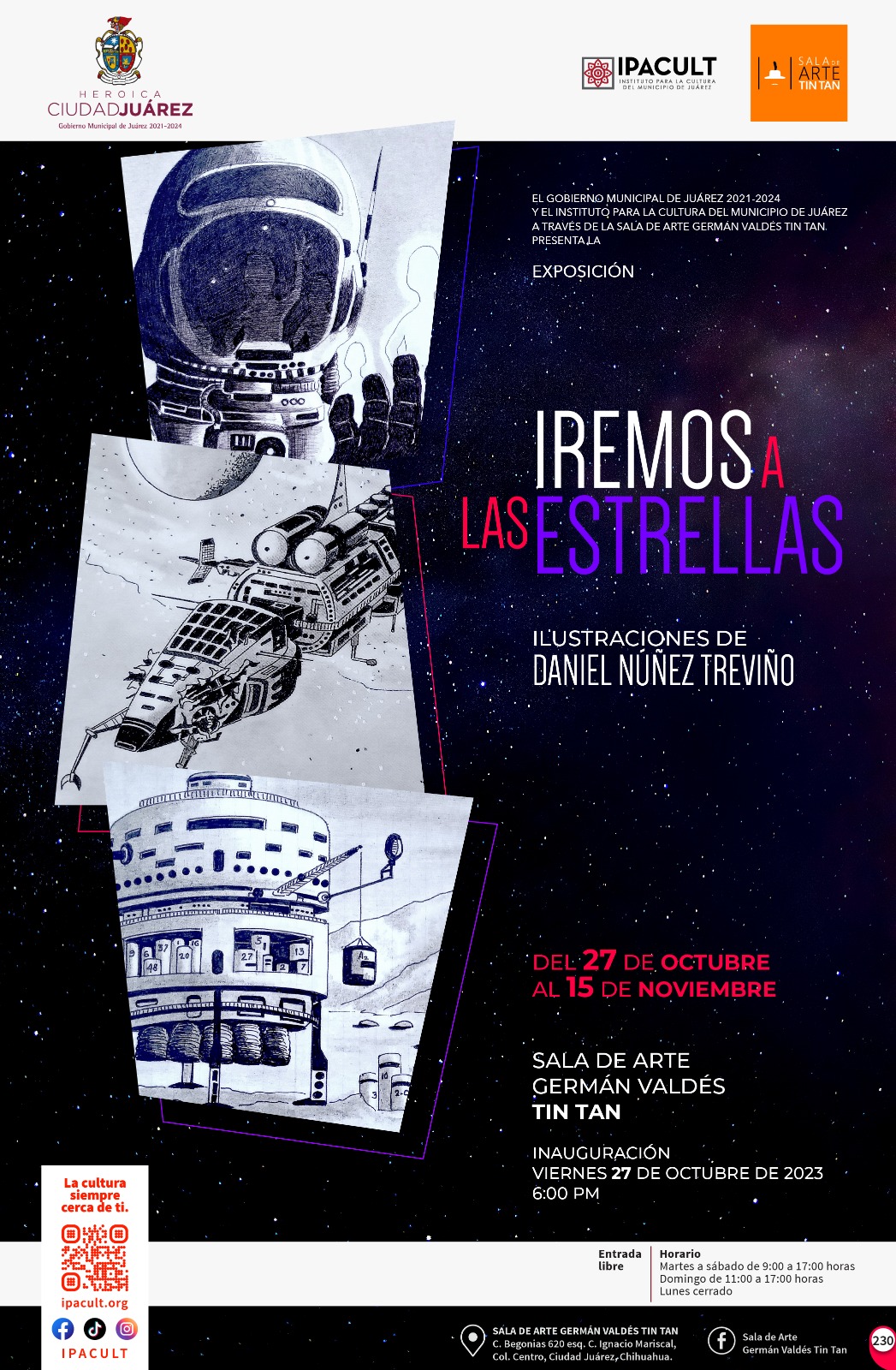 El Instituto para la Cultura del Municipio de Juárez (IPACULT), invita a toda la comunidad para asistir a la ceremonia en la que será inaugurada la exposición de ilustraciones “Iremos a las estrellas”, del autor Daniel Núñez Treviño.El evento tendrá lugar el próximo viernes 27 a las 6:00 de la tarde en la Sala de Arte Germán Valdés “TinTan”.Los interesados podrán acudir al recinto cultural ubicado en la calle Begonias número 620 esquina con calle Ignacio Mariscal, de la colonia Bellavista.Daniel Núñez Treviño, oriundo de Monterrey, Nuevo León es piloto aviador retirado, investigador, dramaturgo, escritor y divulgador de ciencia ficción, dio a conocer Liliana Fimbres, coordinadora de la Sala de Arte.Explicó que con esta muestra, que estará vigente hasta el 15 de noviembre, el autor dará a conocer por medio del recurso de la narración, un viaje por el universo, implícito en su obra ilustrada que expone los inicios de la ciencia ficción en Ciudad Juárez.Además de contemplar la obra, los asistentes a este evento podrán departir con el artista, ya que se ofrecerá un vino de honor; asimismo, interactuar de una manera amena sobre las experiencias acerca del proceso creativo e impresiones acerca de la obra, comentó la funcionaria.De esta manera, el IPACULT cumple el compromiso de ofrecer espacios para la difusión del arte y la cultura en todas sus expresiones, apoyando a los artistas para que puedan dar a conocer sus creaciones.Para conocer la oferta cultural del Instituto, visita el sitio www.ipacult.org y en WhatsApp, siguiendo la liga: https://whatsapp.com/channel/0029VaAN4038KMqjR3mXvz2E